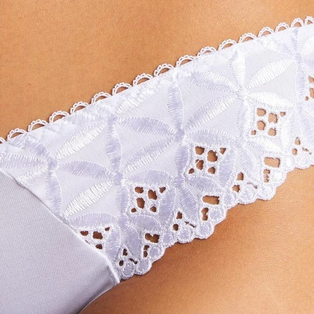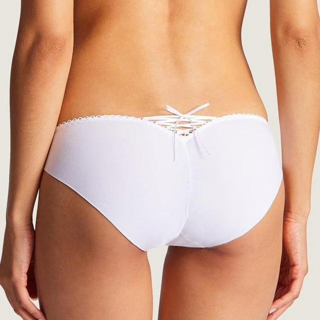 Aubade Bahia Cotton Seamless Briefs. The iconic Bahia & Moi collection has a new lease of life! Aubade reworks its emblematic line with a delicate touch, combining modernity with comfort thanks to its clean-cut cotton knit fabric. Its classic lacing contrasts with the shimmering broderie anglaise and streamlines the figure. Curves are enhanced within this contemporary and sensual line.