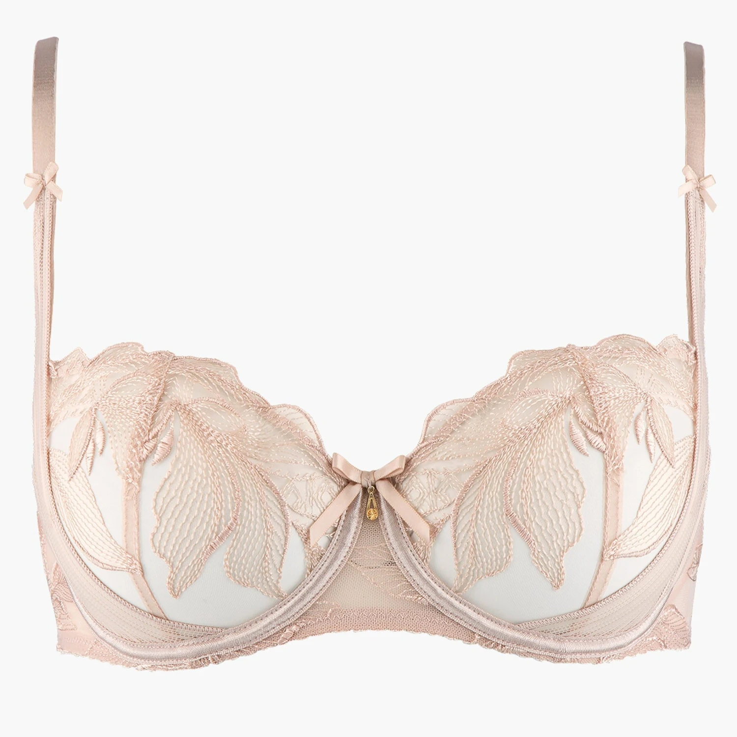 The intricate, eye-catching floral motif flatters the push-up style of this Aubade Fleur de Tatoo Half Cup Balcony Bra, combining embroidered flowers with striped fabric. Straps are overstitched with satin strips in a decidedly modern and seductive design.