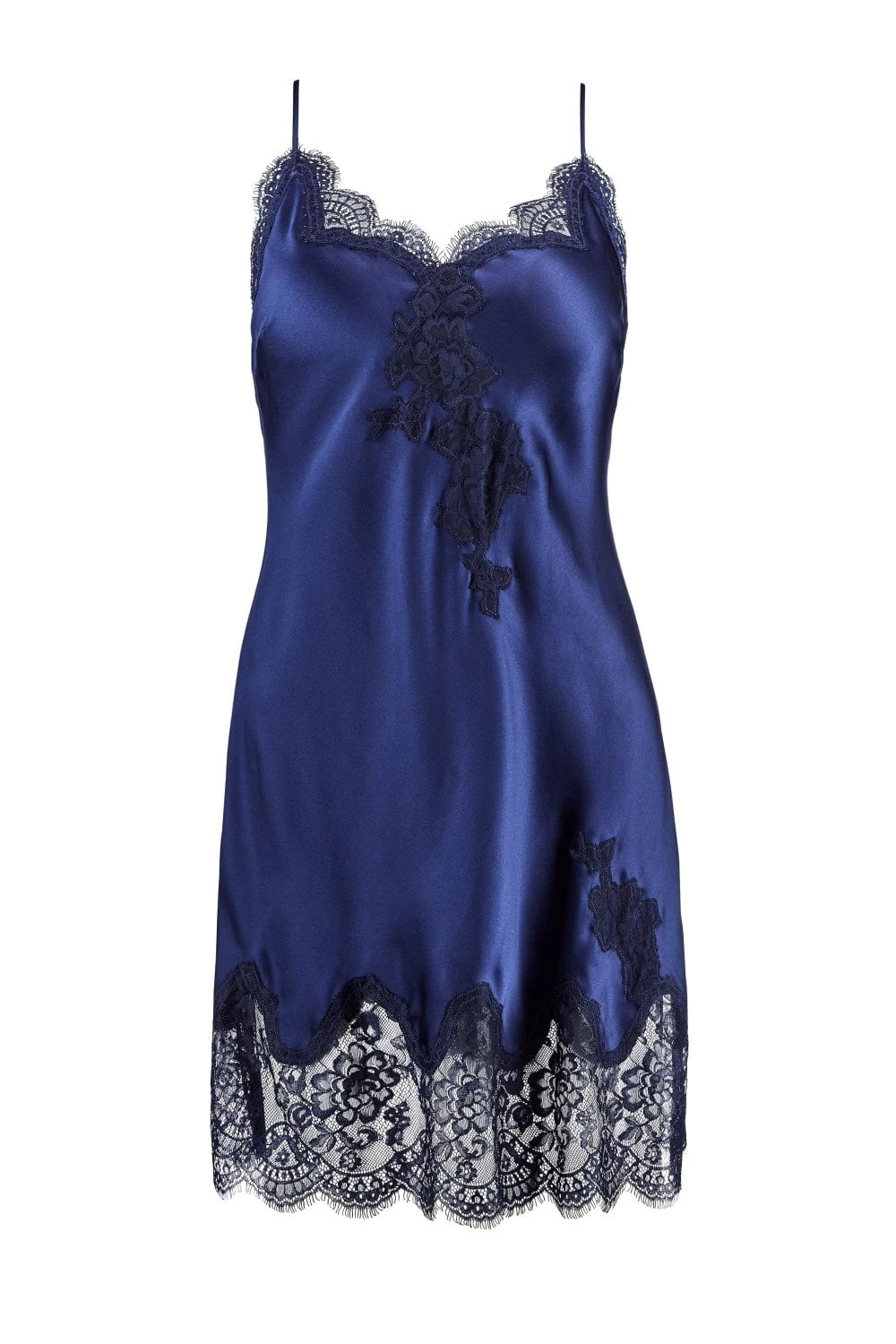 Aubade Toi Mon Amour Bridal Silk and Lace Short Nightdress outlines feminine curves in delicate silk and overlaid lace. The elegant, silk champagne or black colours feel like a second skin. Adjustable spaghetti straps.