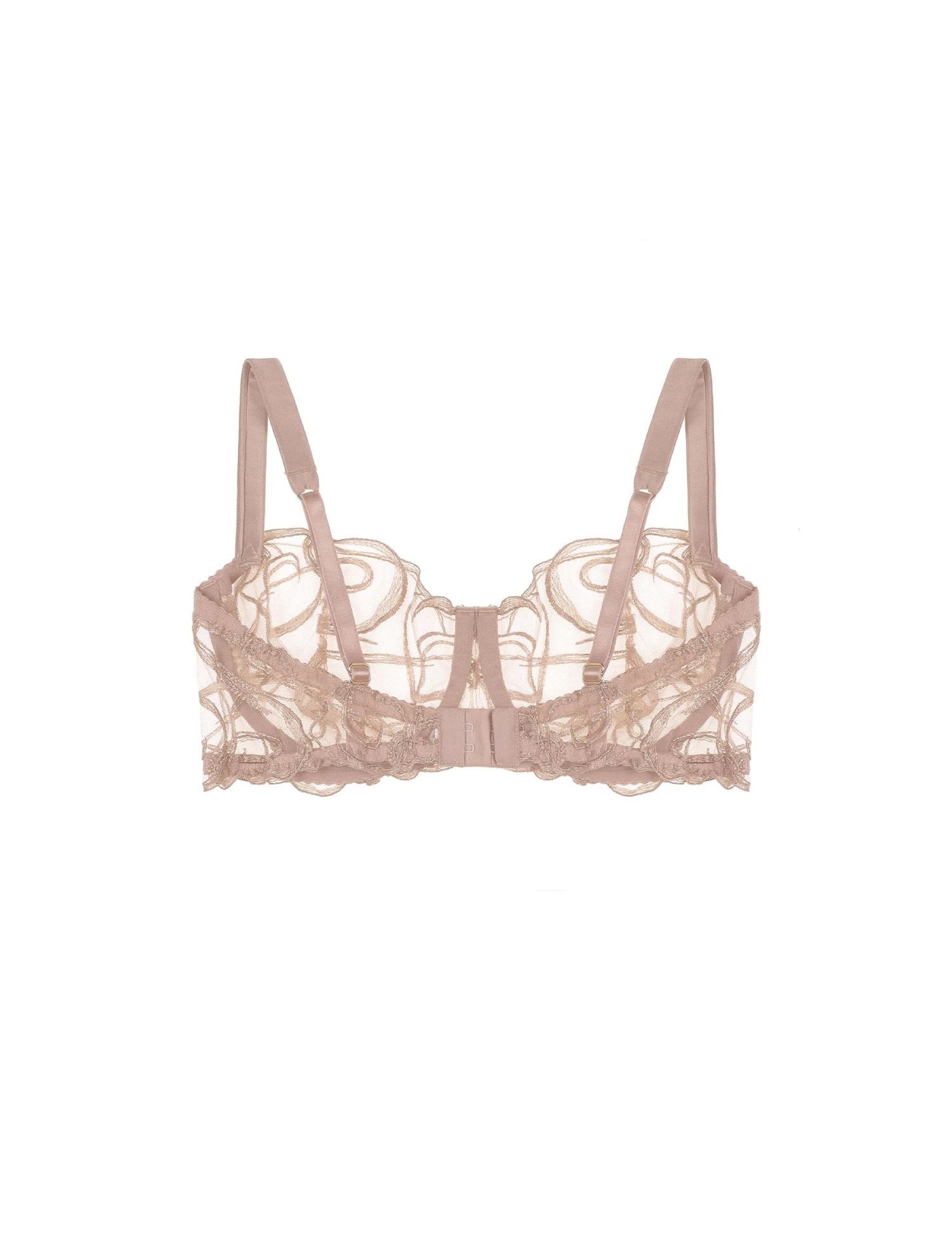Fleur of England Mia Balcony Bra – An ode to artists working in the golden hour, Mia exudes beautiful and elegant confidence. The bespoke hand embroidery designed by fleur features sensual brush strokes in a modern impressionist pattern. Honey hues of embroidery on Italian invisible tulle are combined with café au lait silk for an enchanting and modern collection. 24-carat gold plated hardware adds subtle sparkle, much like the light as it sets in the golden hour, bringing a moment of beauty and enchantment.