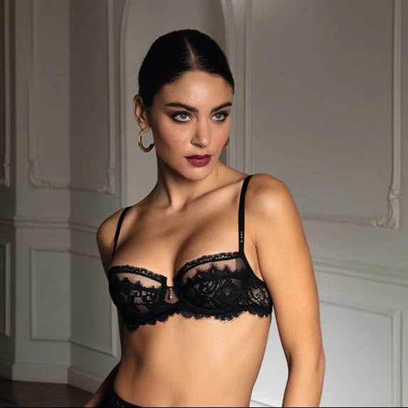 Lise Charmel Désirs de Venise Luxury Lace Half Cup Bra – Désirs de Venise is an opulent lingerie and nightwear collection featuring delicate Calais lace embroidered with rose and tendril motifs and a decadent aesthetic inspired by Fin de Siècle Venice.