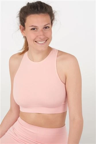 The sports bra is made with sustainable plant-based modal fabric, with a compression area under the bust for support. The seamless construction technique provides support and comfort and creates a feminine silhouette. This technique ensures ideal moderate compression for all activities where the body is in movement.