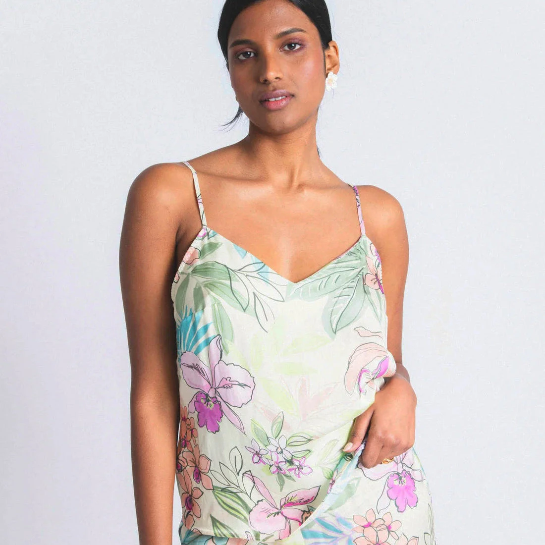 Maison Lejaby Nufit Garden Camisole – Nufit Garden brings its bright, elegant abstract leaf print to Paradise nightwear.
