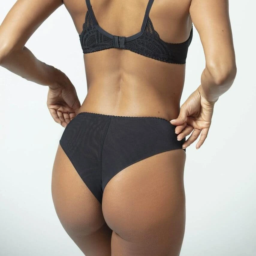 &Pomona Black Mandala Classic Brief – Made in recycled lace and recycled stretch satin.