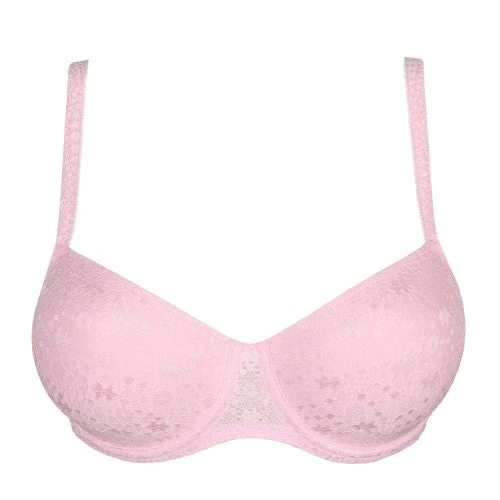 Prima Donna Epirus Padded Balcony Bra – Stylish balcony bra made from delicate 70s-style lace. The lace continues onto the straps and is so thin it doesn’t show under clothes. Pale pink is perfect for hot summer days.