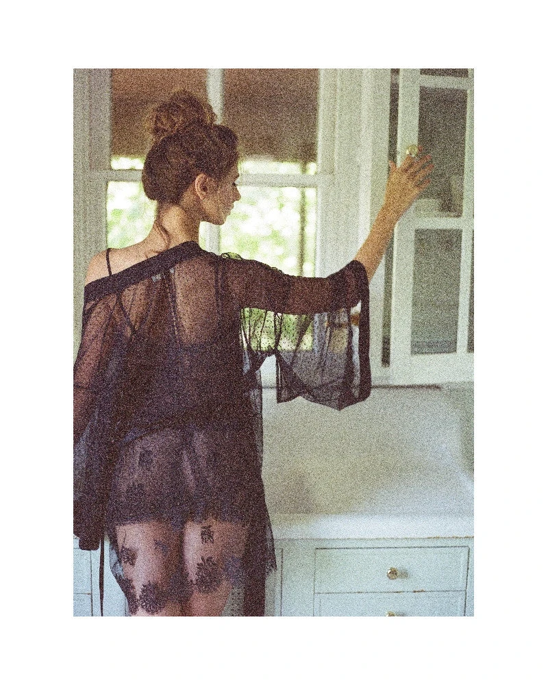 Shell Belle Couture Darling Kimono – A Shell Belle Couture Limited Edition is created with vintage spot tulle & the most divine Couture French leavers lace.